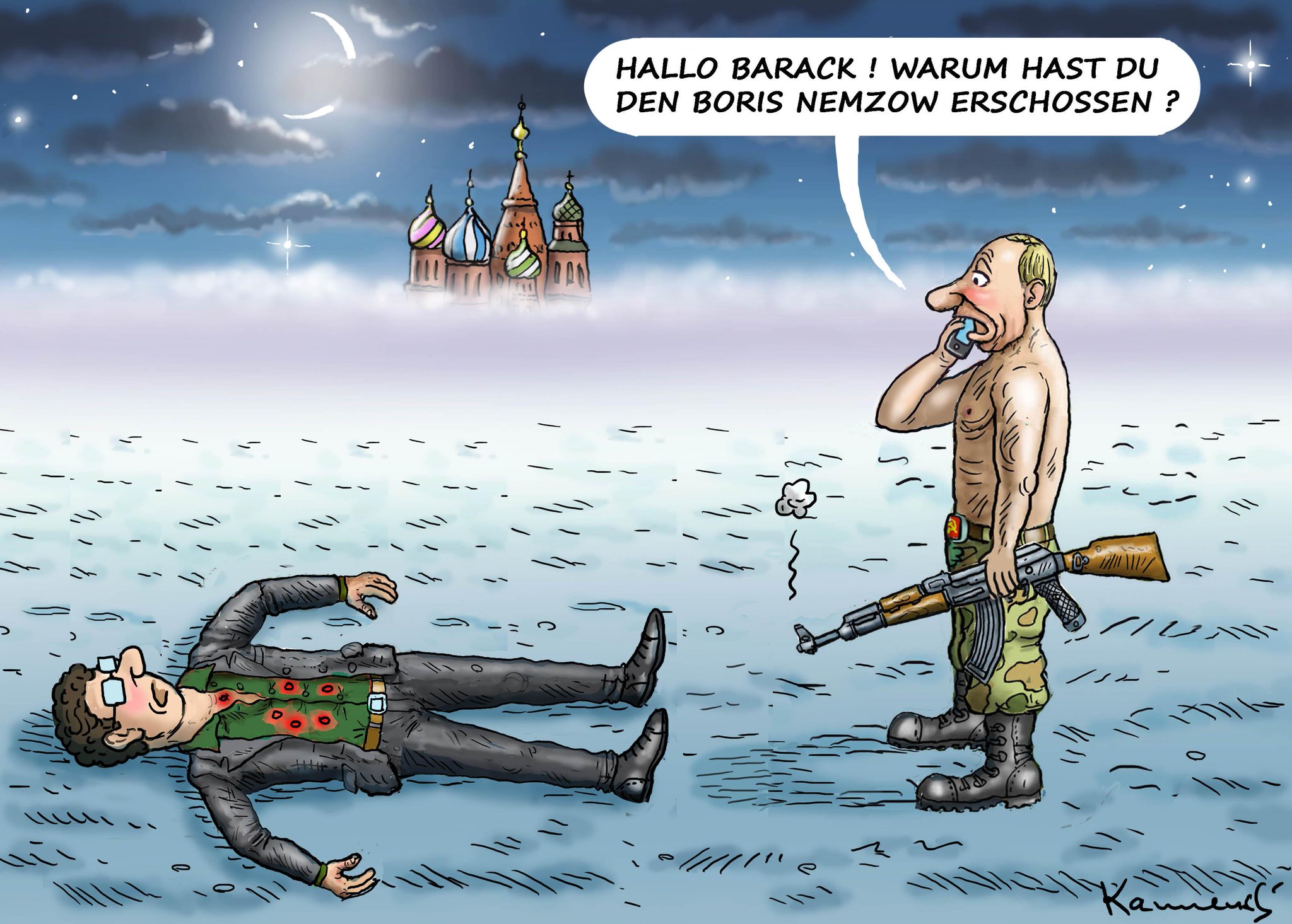 "Привет Барак Обама. Зачем ты убил Бориса Немцова?"